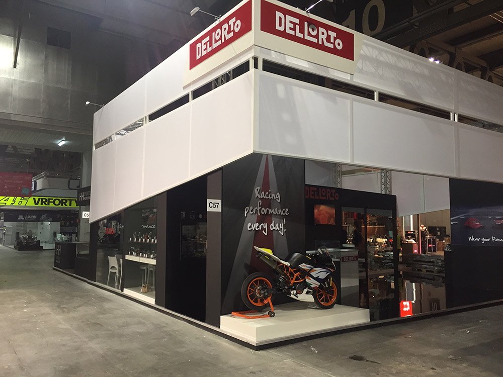 Progettazione e allestimento stand fieristico per Dell'Orto, fiera EICMA MOTO 2016 Milano