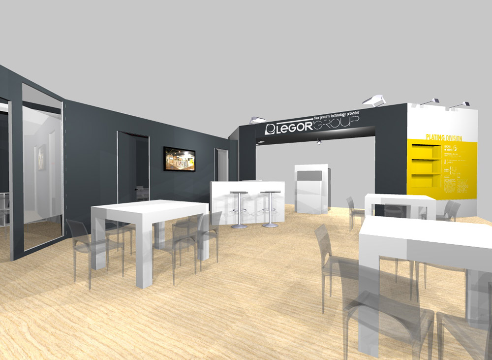 Progettazione e allestimento stand fieristico per Legor, fiera VICENZA ORO T-GOLD 2016 Vicenza