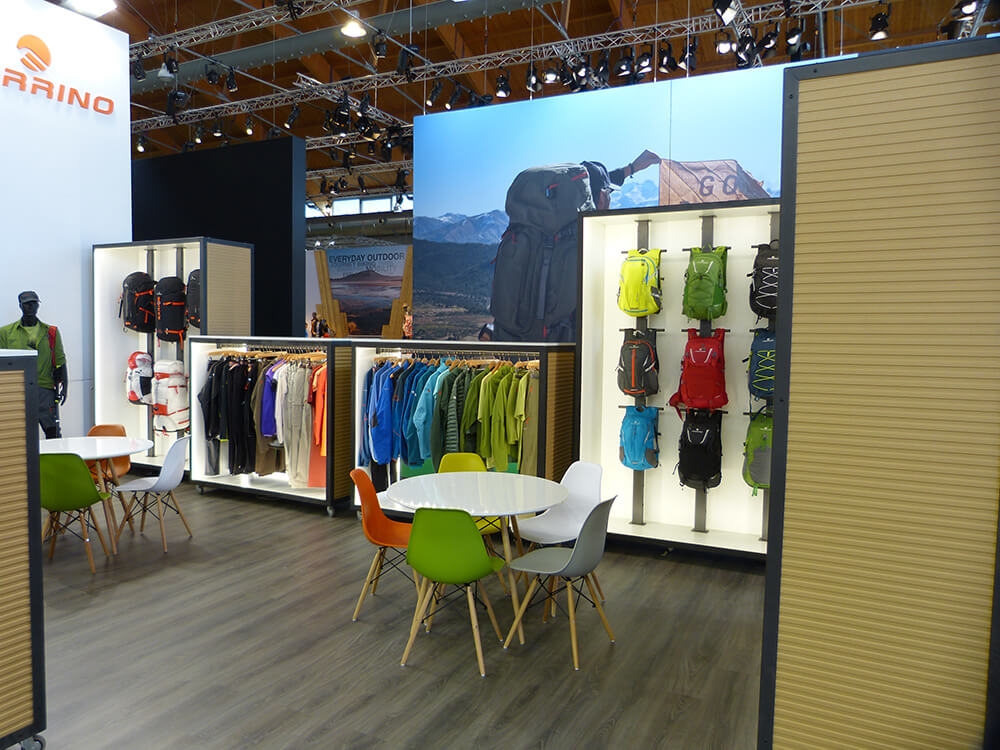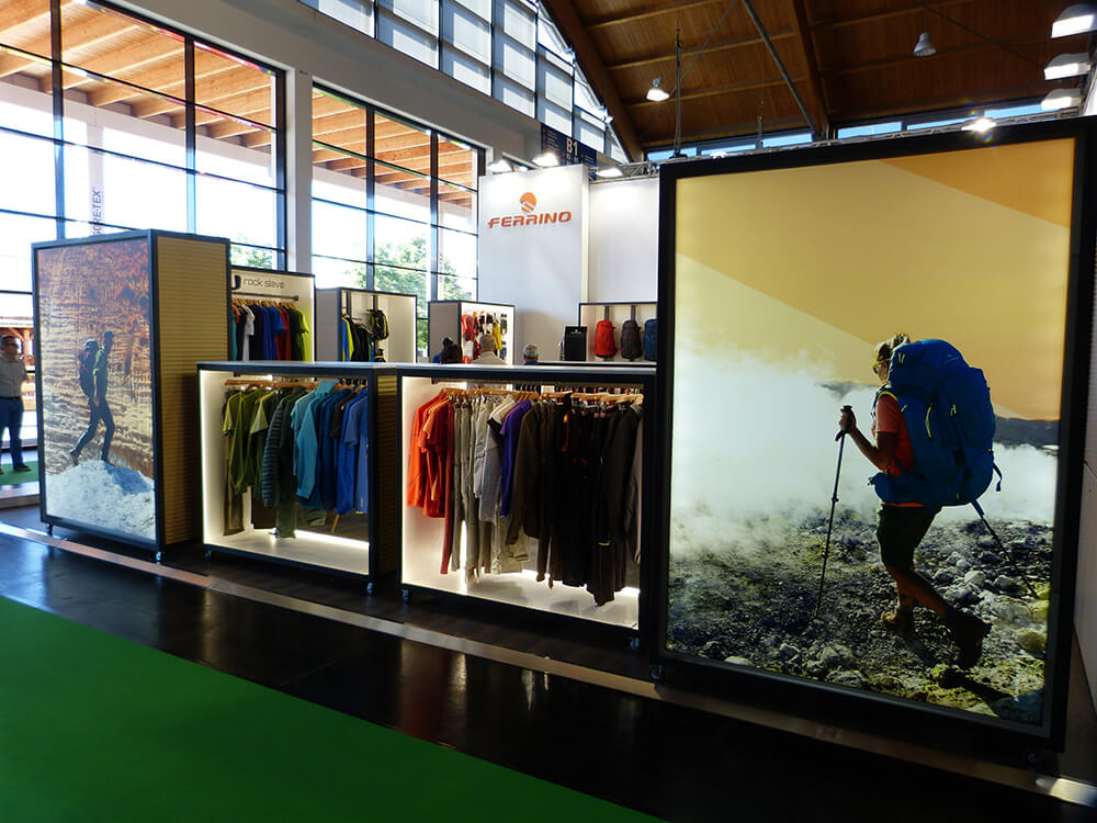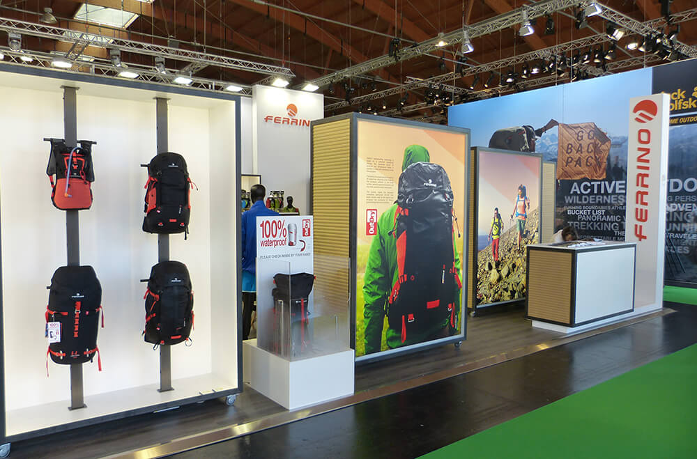 Progettazione e allestimento stand fieristico per Ferrino, fiera OUTDOOR 2017 Friedrichshafen