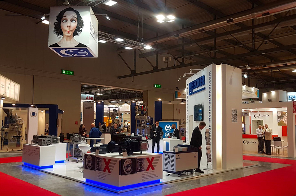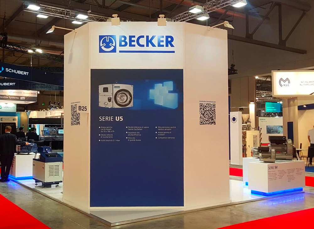 Progettazione e allestimento stand fieristico per Becker, fiera IPACK-IMA 2018 Milano