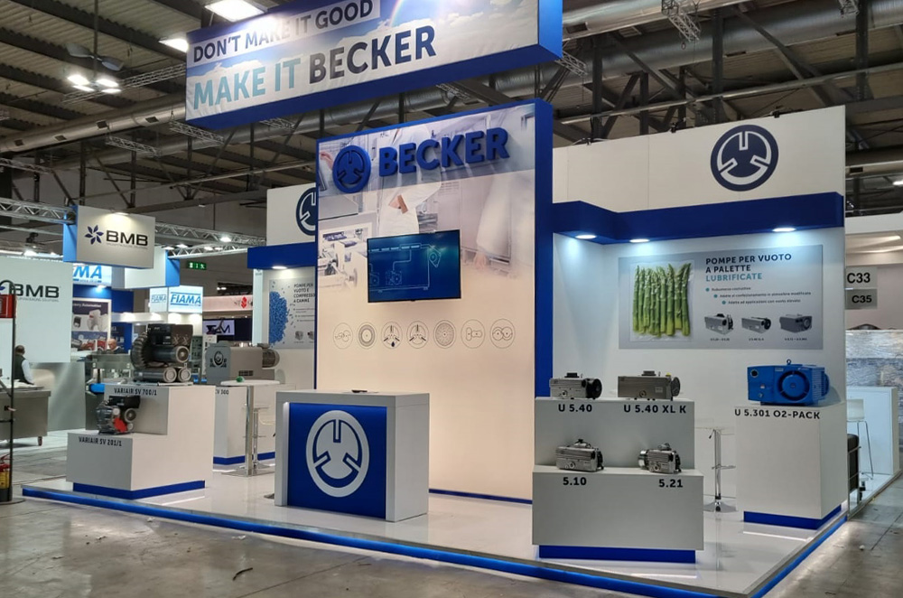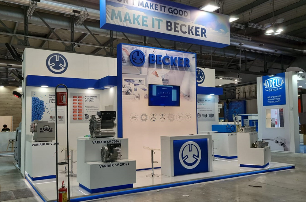 Progettazione e allestimento stand fieristico per Becker, fiera IPACK-IMA 2022 Milano