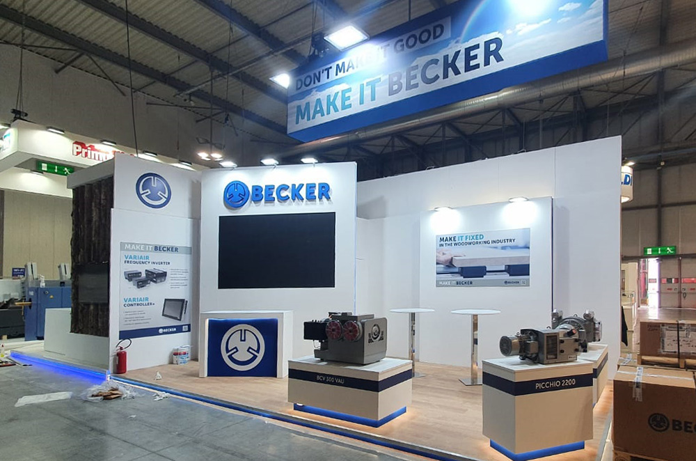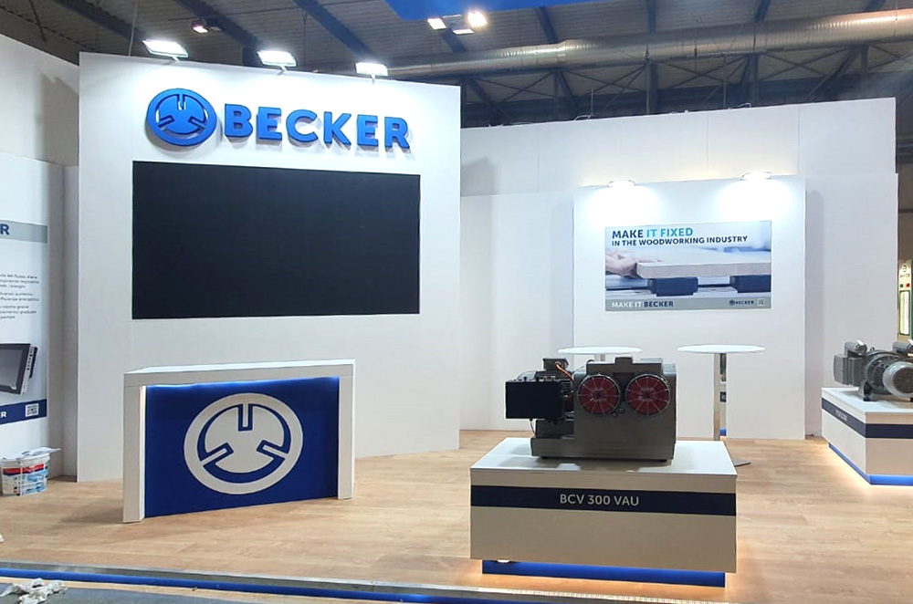 Progettazione e allestimento stand fieristico per Becker, fiera XYLEXPO 2022 Milano