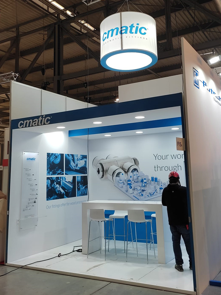 Progettazione e allestimento stand fieristico per Cmatic, fiera XYLEXPO 2022 Milano